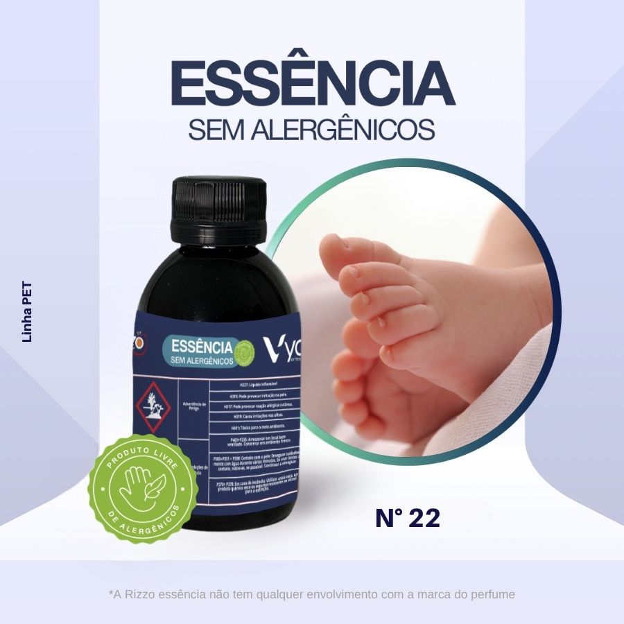 A Essência Bambino Concentrada para Perfumaria e Animais N°22 faz parte da linha exclusiva Allergen Free da Rizzo, desenvolvida para quem busca fragrâncias suaves, seguras e livres de alergênicos. Ideal para a criação de perfumes delicados e produtos para o cuidado de animais com peles sensíveis, essa essência proporciona uma experiência olfativa aconchegante e leve. Com notas suaves e frescas, a Essência Bambino transmite um aroma fresco, limpo e delicado, perfeito para diversos tipos de perfumes, como body splash, eau de cologne, eau de toilette, eau de parfum e parfum. Além disso, pode ser usada em difusores e aromatizadores de ambiente, garantindo um ambiente perfumado e acolhedor. Para preparar perfumes, recomenda-se a diluição de 100 ml da essência em 400 ml da base Parfum Solúvel, com agitação e repouso na geladeira por 48 horas, para garantir melhor fixação. A linha Allergen Free assegura a ausência de alergênicos, proporcionando conforto e segurança para pessoas e pets. ⚠️ Importante: a base para diluição é vendida separadamente. Utilize as concentrações indicadas para cada aplicação. Produto seguro para perfumaria e uso animal.