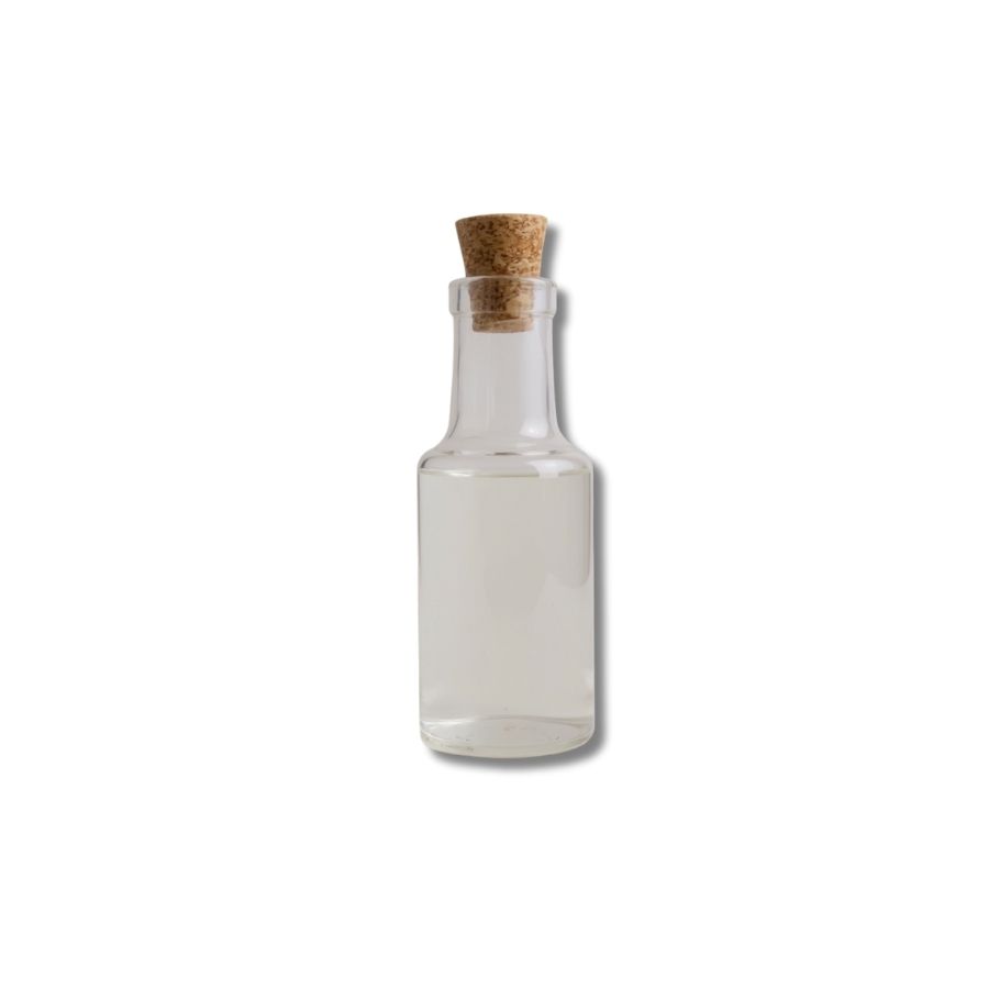Mini pote de vidro em formato de garrafa de 5ml com rolha, ideal para essências, sais de banho, lembrancinhas e projetos artesanais criativos.