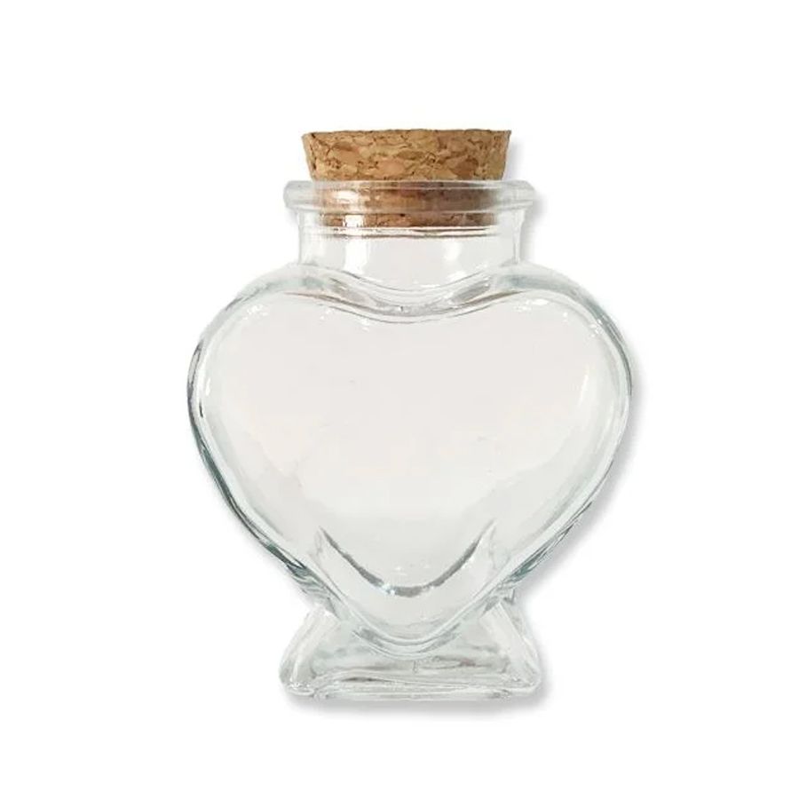 Potinho de Vidro Coração com Rolha 70ml - 1 Unidade - 6cm x 7cm - Rizzo Confeitaria
